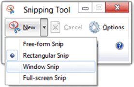 The Snipping Tool allows you choose one of four capture methods as follows: